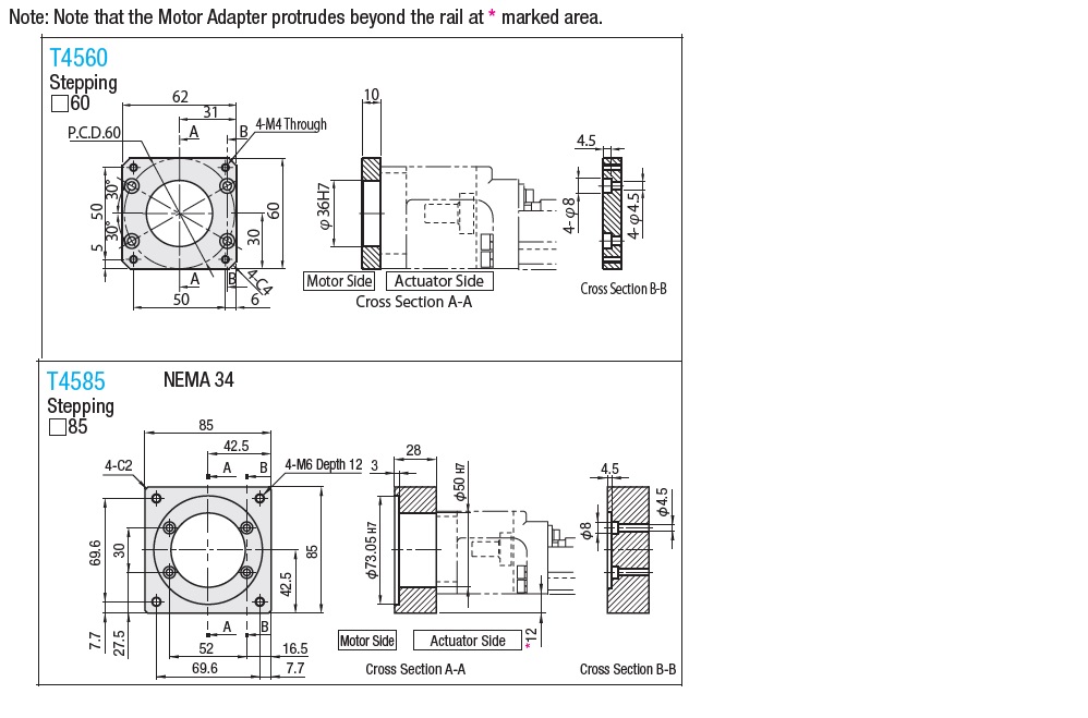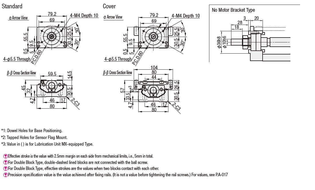 <MAX speed> Reference value calculated from critical speed of ball screw and DN value. Please note that these values are not guaranteed values that take into consideration the number of revolutions of the motor, operating conditions, etc.