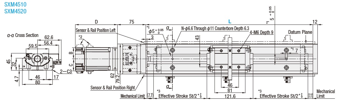 | ※Body weight | Total weight of actuator, coupling, sensor rail, 3 sensors, and dog (light shielding plate). |