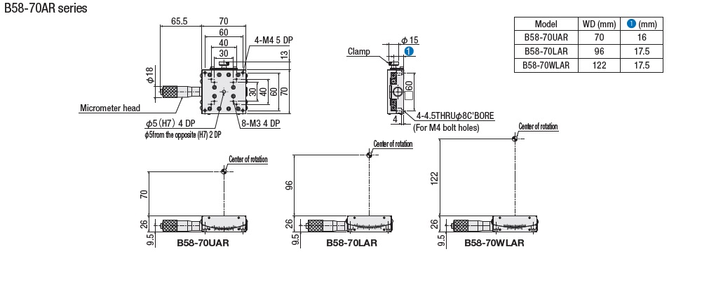 Cross RollerGoniometer Stage□70mm:B58-70(Micrometer)