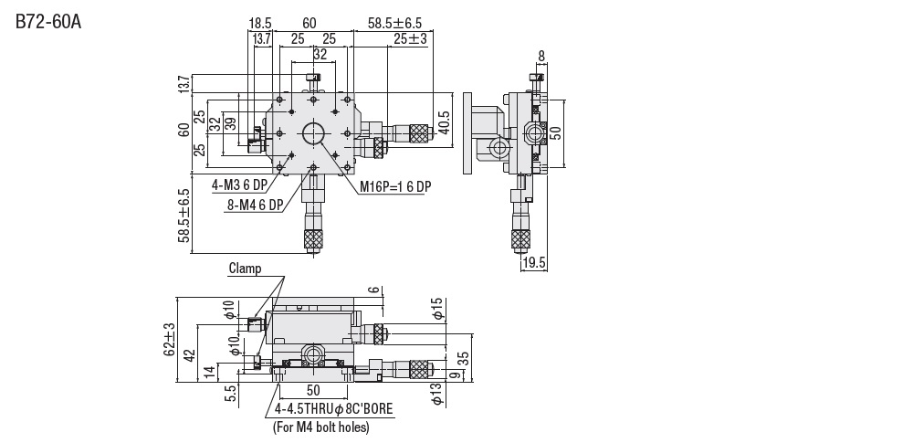 Horizontal XYZ-Axis Thin TypeCross Roller Guide□60mm:B72-60