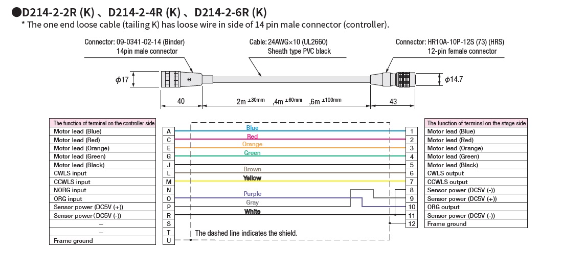 ●When one end is loose, the controller side (left side) of the above cable diagram is a loose wire.