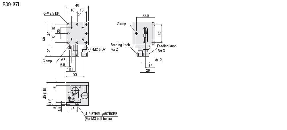 Horizontal XZ-Axis Dovetail□40mm Composite - Rack and pinion - Feeding screw
