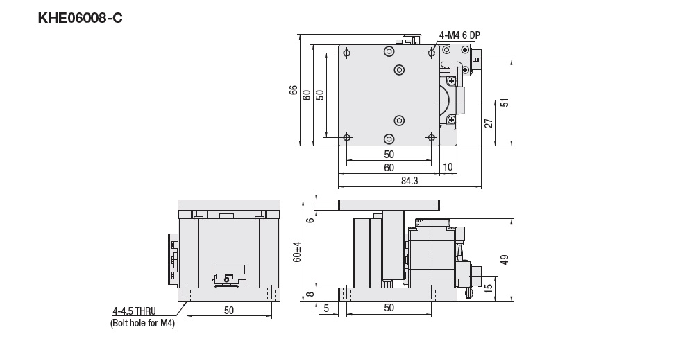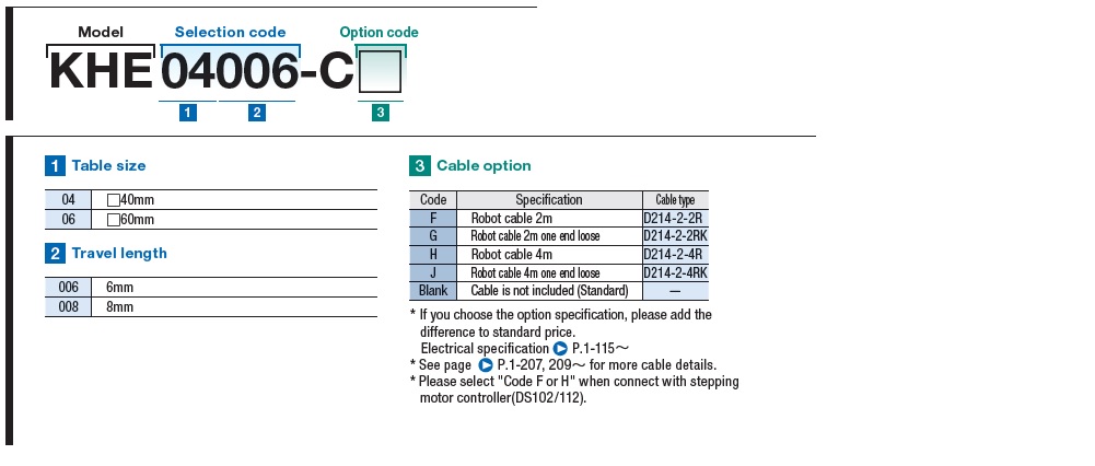Table surface size: 60 x 60mm specification, the model number will be "KHE06~".